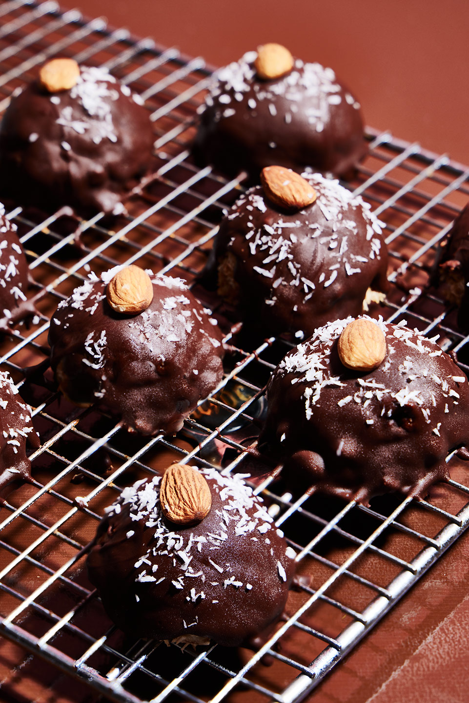 - Mix coconut and almonds in a large bowl. Add almond butter and honey and mix thoroughly until a dough-like consistency is reached. Using an ice cream scoop, scoop out cookies on to baking sheet. Transfer to freezer for 20 minutes.