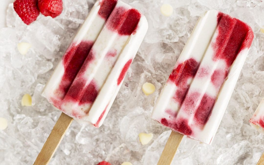 Bake Believe’s Low Carb, No Sugar Added White Raspberry Popsicles Yield: ~6 pops Prep Time: 20 minutes Cook Time: 5 minutes Cooling Time: 4 hours Total Time: 4 hours, 25 minutes Ingredients: For the White Chocolate Layer: ½ cup Bake Believe ® White Melting...