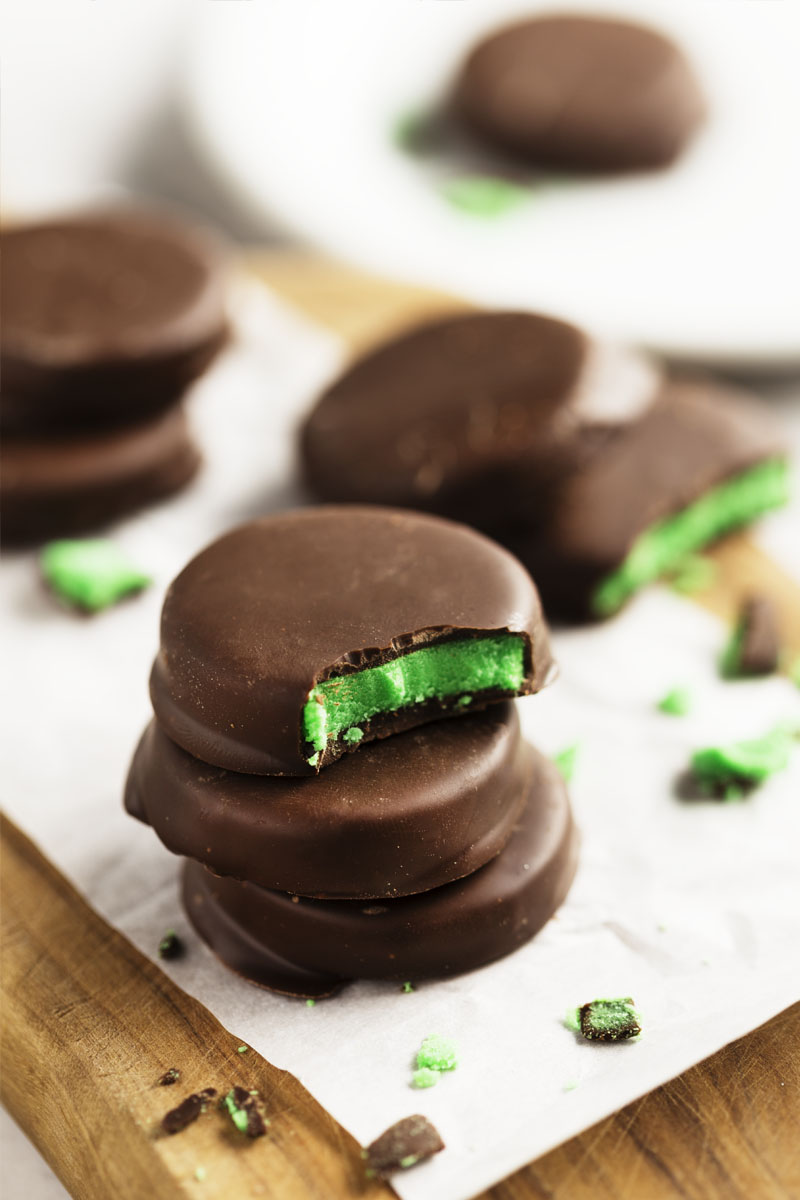 - Using a 1 ½-inch circle cutter, cut out the mint patties. Reroll any excess dough and cut more patties. You should end up with about 10.