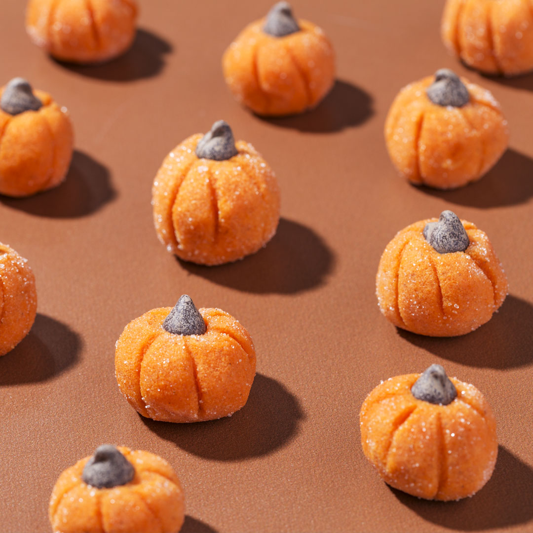 - Using the back of a butter knife, press into the truffles to form lines and create a pumpkin design.
